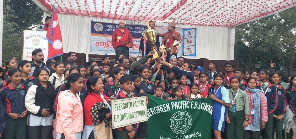 भैरहवा, पुस २ एभरग्रिन प्यासिफिक इङ्लिस हाइस्कूल मायादेवी ७ रुपन्देहीले आज एक कार्यक्रमका बिच विजयी जुलुस निकालेको छ । सामूहिक विद्यालय परिवार रुपन्देहीद्वारा आयोजित २२ औँ सामूहिक खेल महोत्सव–२०८२ मा सहभागी रहेका बिद्यालयहरुमध्ये सर्वाधिक ९ वटा स्वर्ण पदक प्राप्त गरेको अवसरमा ब..