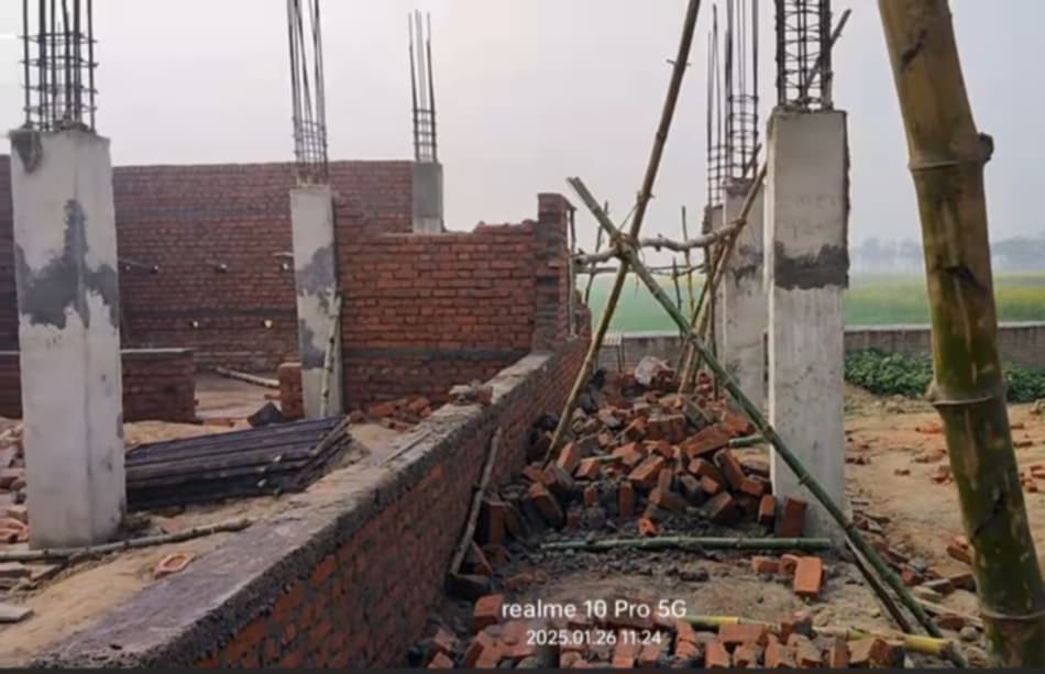 भवननिर्माणको लागि ठेक्का लिएको रोयल एसके निर्माण सेवा गैडहवा ७ का संचालक फागू कुर्मीले स्टीमेट अनुसारकै सामाग्री प्रयोग गरेको दाबी गर्नु भएको छ । उहाले भन्नु भयो ‘६÷१ को मसाला बनाउने स्टीमेट भएको छ सोहीअनुसार काम गरेका छौँ । अधिक शीतलहरले गर्दा १ दिन अगाडी जडान भएको दिवाल नसुकेर मात्रै ढलेको हो । बालुवा अलिकति कम हुन गएको छ त्यो म सुधार्नेछु बाकी कुनै कार्यमा कमशल छैन । ’भवन निर्माण स्थलमा सुचनाबोर्ड तत्काल राख्ने निर्माण कम्पनीका संचालक कुर्मीले बताउनु भयो ।