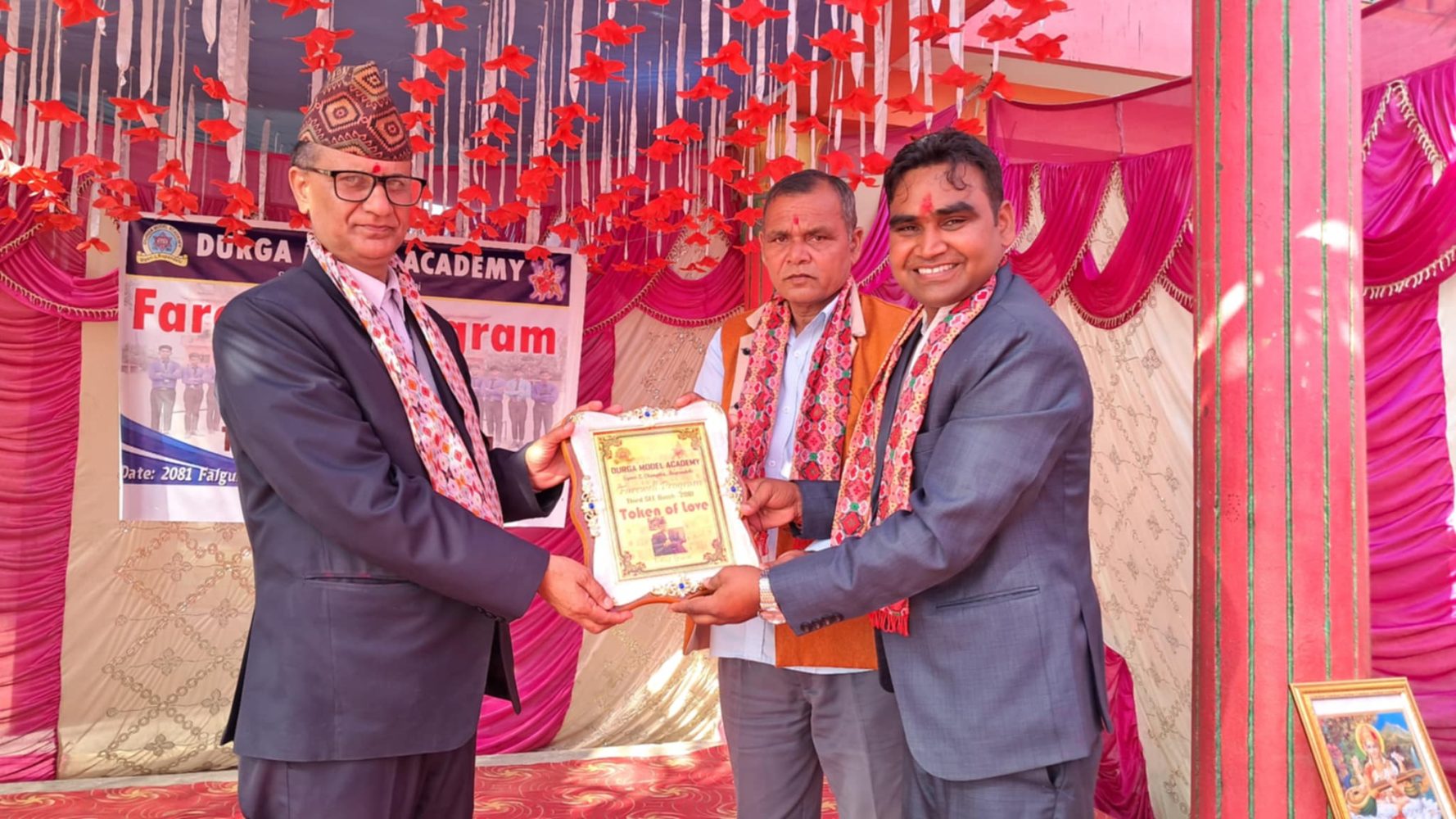 उहाले बिद्यार्थीको सफलता र सपनामा रमाउने नै अभिभावक र गूरुजन भएकोले उनीहरुको सम्मान गर्नुपर्ने बताउनु भयो । उहाले बिद्यार्थीहरु जुन ठाउ गएर सफलता प्र्राप्त गरेपनि त्यसमा दुर्गा मोडेल एकेडेमी सर्टिफिकेट मार्फत नै बिद्यार्थीहरुलाई पछयाइ रहने बताउनु भयो ।