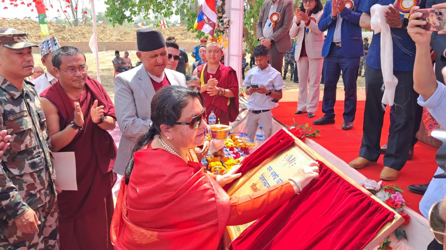 बुद्ध जन्मस्थल लुम्बिनीमा थुक्छे छोइलिङ्ग मोनाष्ट्री गुम्बाको आज शुक्रवार एक कार्यक्रमका बिच पुर्व राष्ट्रपति बिद्यादेवी भण्डारीले शिलन्यास गर्नु भएको छ । गुम्बाको शिलन्यास गर्दै पुर्व राष्ट्रपति भण्डारीले बुद्ध जन्मस्थल लुम्बिनी अन्तराष्ट्रिय धार्मिक पर्यटनको महत्वपुर्ण केन्द्र्र बन्दै गएको बताउनु भएको छ । उहाले नेपालको ऐेतिहासिक, सांस्कृतिक तथा आध्यात्मिक पहिचानलाई लुम्बिनीले बिश्व मंचमा अझै मजबुत बनाएको जोड दिनु भयो । उहाले यसको संरक्षण,प्रवद्र्धन तथा प्रचारप्रसार गर्नु सम्पुर्ण नेपालीको कत्र्तब्य भएको उल्लेख गर्नु भयो । पुर्व राष्ट्रपति भण्डारीले लुम्बिनी बुद्धको जन्मस्थल मात्र नभइ बौद्ध दर्शनको उद्गम स्थल भएको बताउदै बौद्धशिक्षा र बौद्ध दर्शनको अन्तराष्ट्रिय केन्द्रको रुपमा रहेको लुम्बिनीको बिकास गर्नुपर्ने जोड दिनु भयो ।