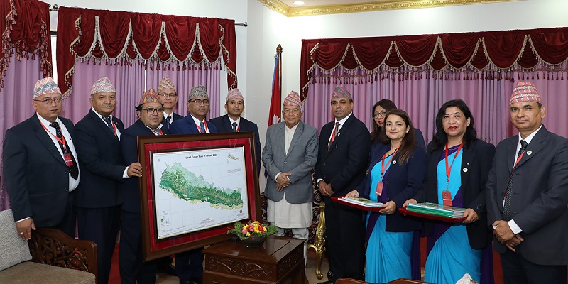 राष्ट्रपति रामचन्द्र पौडेलले ‘नेशनल ल्यान्ड कभर म्याप २०२०/२०२२’ (राष्ट्रिय भू–ढकान नक्सा) आज राष्ट्रपति भवन शीतल निवासमा सार्वजनिक गर्नुभएको छ ।