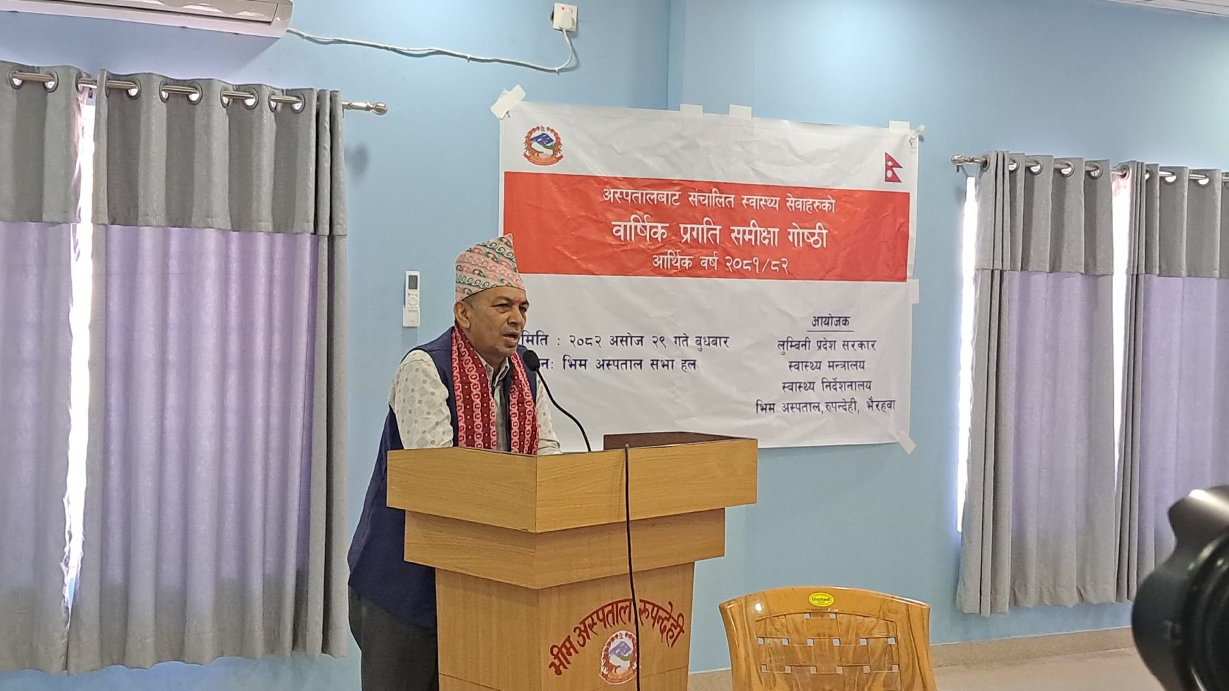 भिम अस्पताल भैरहवाबाट सञ्चालन भइरहेका विभिन्न स्वास्थ्य सेवाहरूको वार्षिक प्रगति समीक्षा गोष्ठी एक विशेष समारोहका बीच सम्पन्न भएको छ । भिम अस्पताल विकास समितिका अध्यक्ष डा. अनन्त कुमार शर्माको अध्यक्षता तथा जिल्ला समन्वय समिती रुपन्देहीका प्रमुख उमाकान्त चपाईको प्रमुख आतिथ्यतामा कार्यक्रम सम्पन्न भएको हो ।