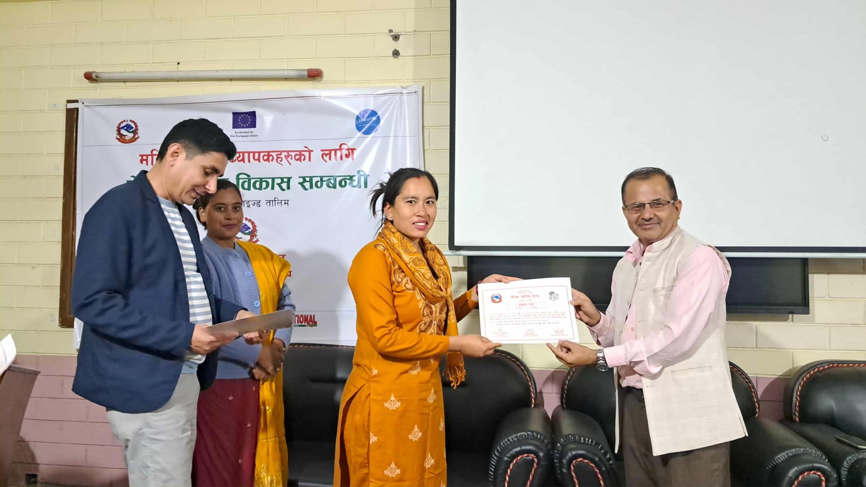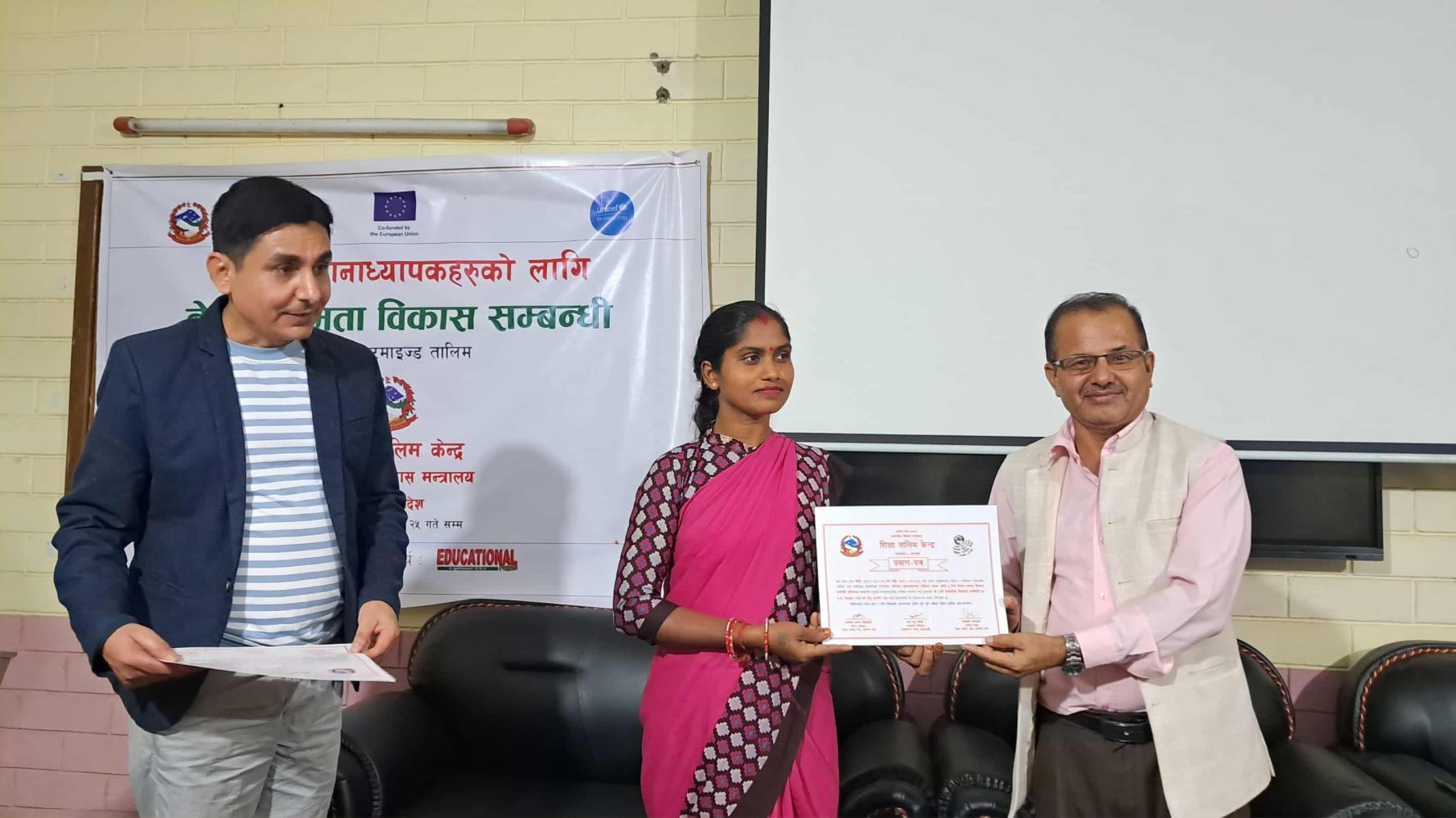 शिक्षा तथा मानव स्रोत विकास केन्द्र सानोठिमीको समन्वयमा, युनिसेफ नेपाल र एजुकेशनल पेजेजको प्रविधिक सहयोगमा कार्तिक २३ देखि २५ गतेसम्म आयोजित उक्त तालिम मंगलबार एक कार्यक्रमका बिच समापन गरिएको छ । तालिममा लुम्बिनी प्रदेशका चार जिल्लाका नौ पालिकाबाट ५६ जना महिला सहभागी भएका थिए ।