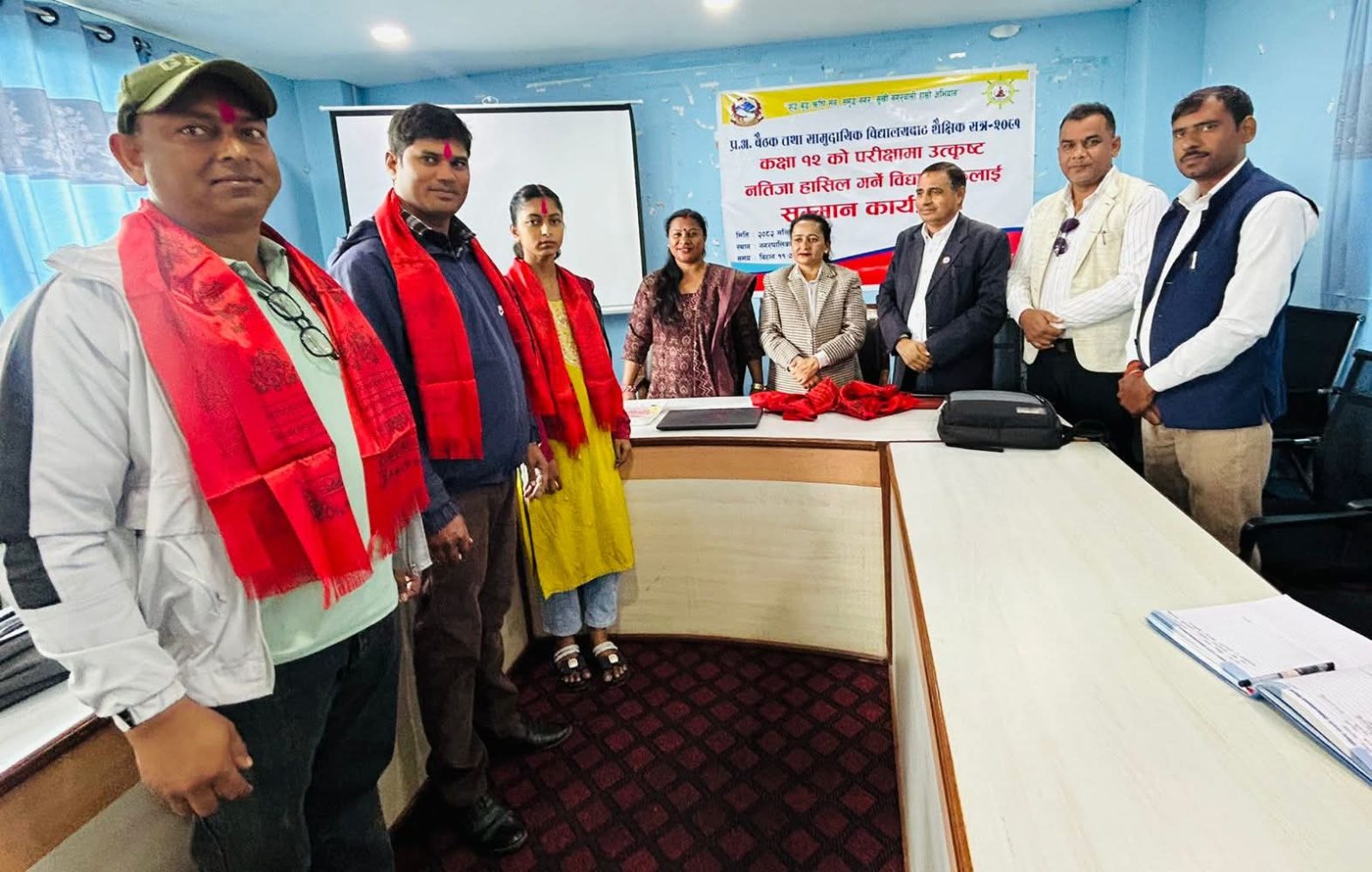 यस्तै गरि प्रमुख प्रशासकीय अधिकृत तारा ज्ञवालीले नगरपालिकाले शिक्षा सुधारका लागि प्रभावकारी कार्यक्रमहरू सञ्चालन गर्दै आएको उल्लेख गर्नुभयो। उहाँले भन्नुभयो, “विद्यार्थीले उत्कृष्ट फलাফল ल्याउनु सामुदायिक विद्यालयको क्षमताको प्रमाण हो। नगरपालिका आगामी दिनमा अझ व्यवस्थित र परिणाममुखी शिक्षा कार्यक्रम विस्तार गर्दै लैजानेछ।”