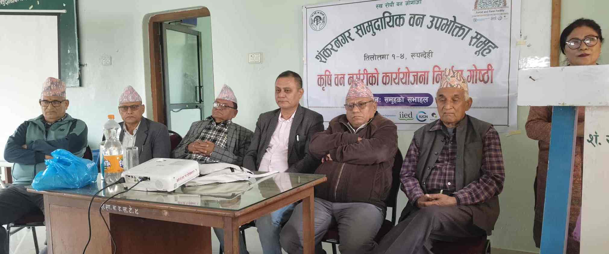 शंकरनगर सामुदायिक वन उपभोक्ता समूह तिलोत्तमा १–४ रुपन्देहीले वन तथा कृषि सहज नेपाल(एफ एफ एफ) जलवायु अनुकुलन भूभाग र सुधारिएको जीविकोपार्जन परियोजना अन्तर्गत एफ ए ओ (खाद्य तथा कृषि संगठन) को सहयोगमा कृषि वन नर्सरी ब्यवस्थापन तथा जलवायु परिवर्तन अनुकुलन विपद जोखिम न्यूनीकरण रणनीति निर्माण सम्वन्धि कार्यशाला गोष्ठि गरेको छ । विश्वभर खाद्य सुरक्षा सुनिश्चित गर्ने, भोकमरी अन्त्य गर्ने, कृषि उत्पादन बढाउने, ग्रामीण विकासलाई प्रोत्साहन दिने प्राकृतिक स्रोतहरूको दिगो उपयोग सुनिश्चित गर्ने मुख्य उद्देश्य रहेको संयुक्त राष्ट्रसंघ अन्तर्गतको खाद्य तथा कृषि संगठनले शँकरनगर सामुदायिक वनमा कृषि वन नर्सरीका लागि आर्थिक सहयोग गरेको छ ।