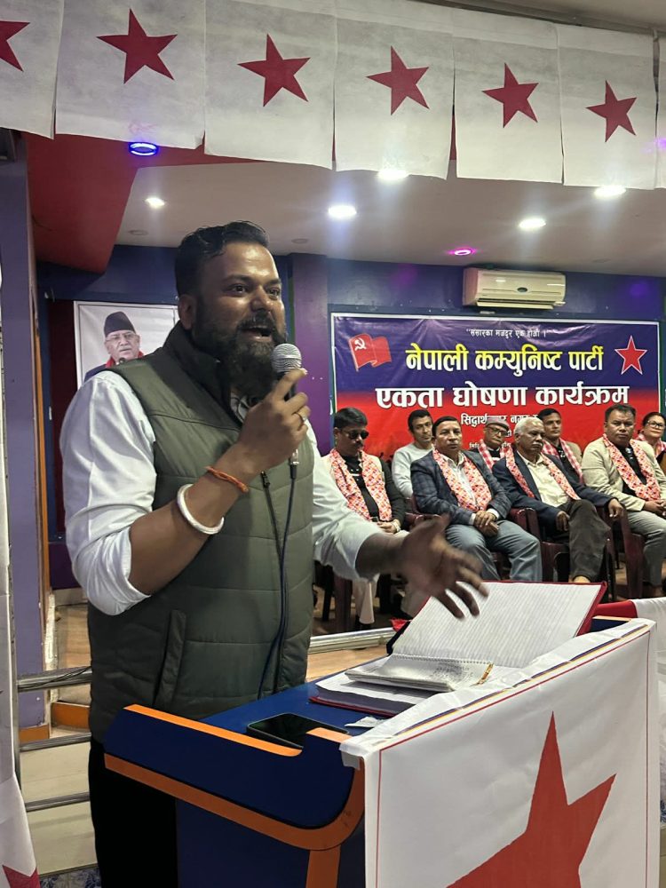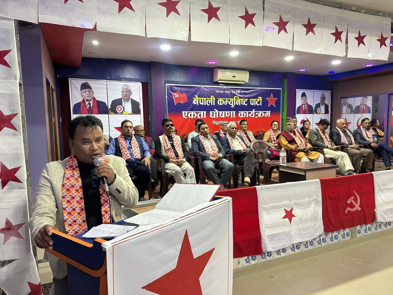 नेपाली कम्युनिष्ट पार्टी सिद्धार्थनगर नगर समितिको आयोजनामा भैरहवामा एकता घोषणा कार्यक्रम सम्पन्न भएको छ । कार्यक्रम नगर समितिका अध्यक्ष नारायण बहादुर हमालको अध्यक्षता तथा महाधिवेशन आयोजक कमिटीका केन्द्रीय सदस्य हक्की कुल्लाह खानको प्रमुख आतिथ्यतामा एकता घोषणा कार्यक्रम सम्पन्न भएको हो ।
