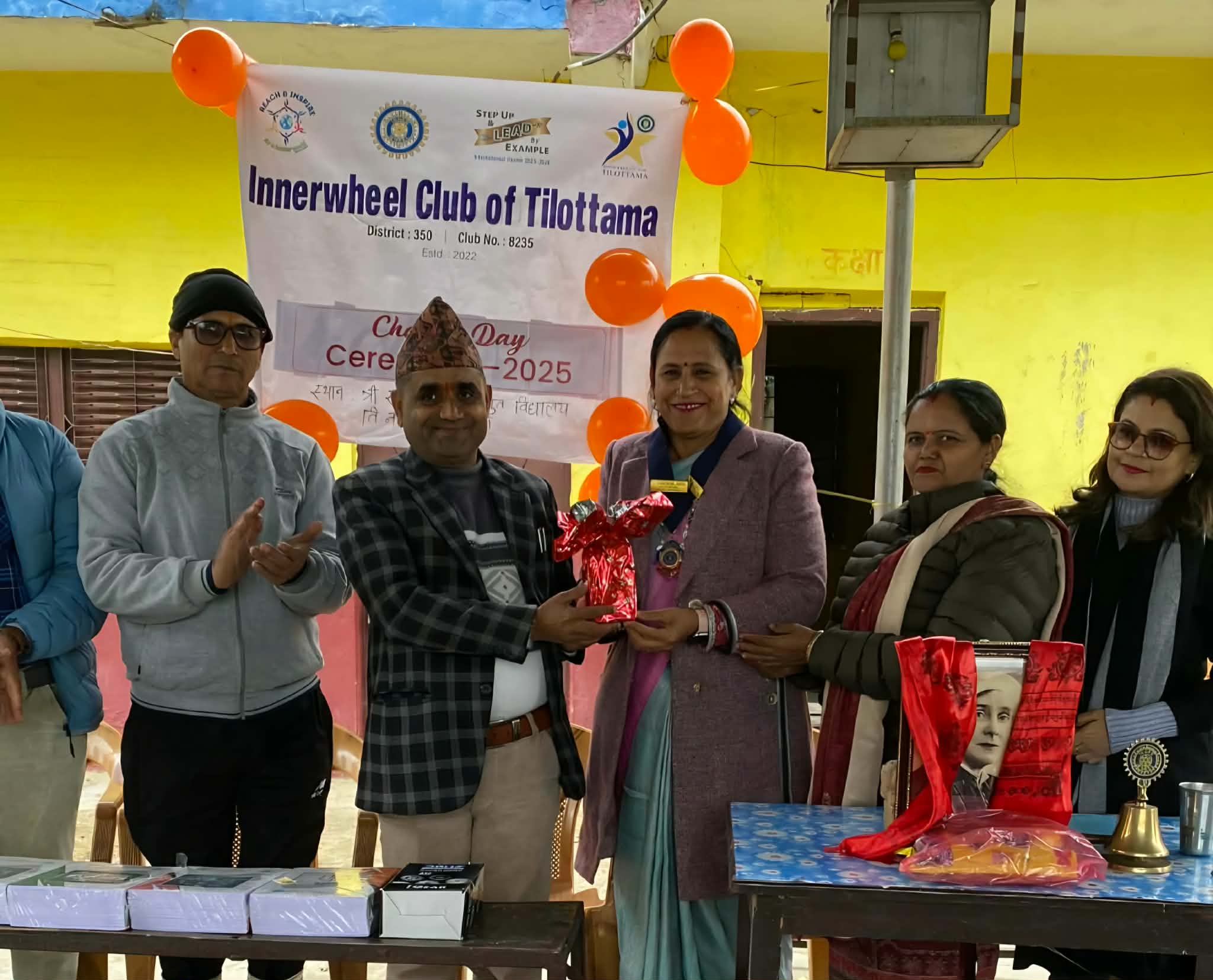 इनरव्हील क्लब अफ तिलोत्तमाले आफ्नो स्थापना दिवसको अवसरमा शैक्षिक सामाग्री वितरण कार्यक्रम सम्पन्न गरेको छ । क्लबले सरस्वती आधारभूत विद्यालय तिलोत्तमा –१४ रेहराका ३५ जना विद्यार्थीलाई कापी, पेन्सिल लगायत सामाग्री वितरण गर्दै मिष्ठान्न समेत वितरण गरेको हो ।