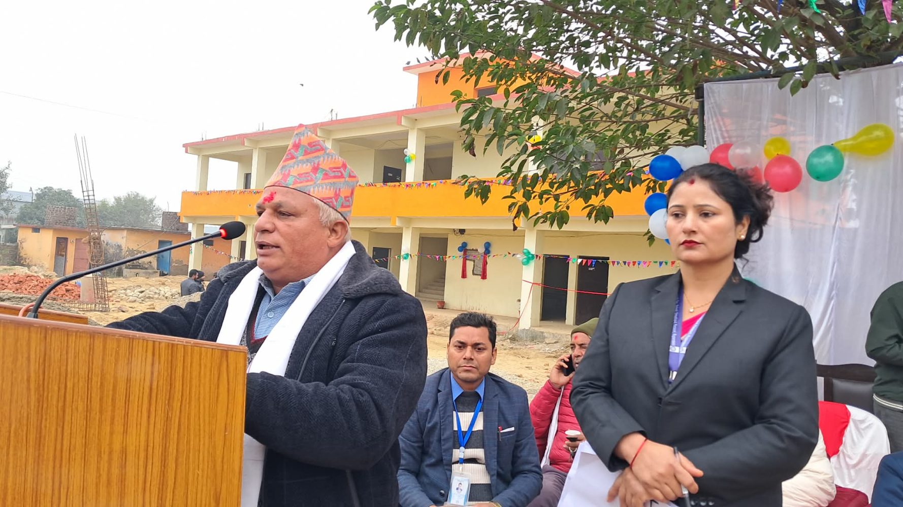 कार्यक्रममा स्वागत मन्तव्य राख्दै शिक्षिका प्रीती पाण्डेले विद्यालयको विगतदेखि वर्तमानसम्मको अवस्थाबारे प्रकाश पार्दै नयाँ भवन निर्माणले शिक्षक र विद्यार्थी दुवैलाई सहजता प्रदान गर्ने बताउनुभएको छ । उहाले सीमित कोठा र असहज अवस्थाबीच पठन–पाठन गर्दै आएको विद्यालय आज व्यवस्थित संरचना पाउँदा सबै उत्साहित भएको बताउनु भएको छ ।