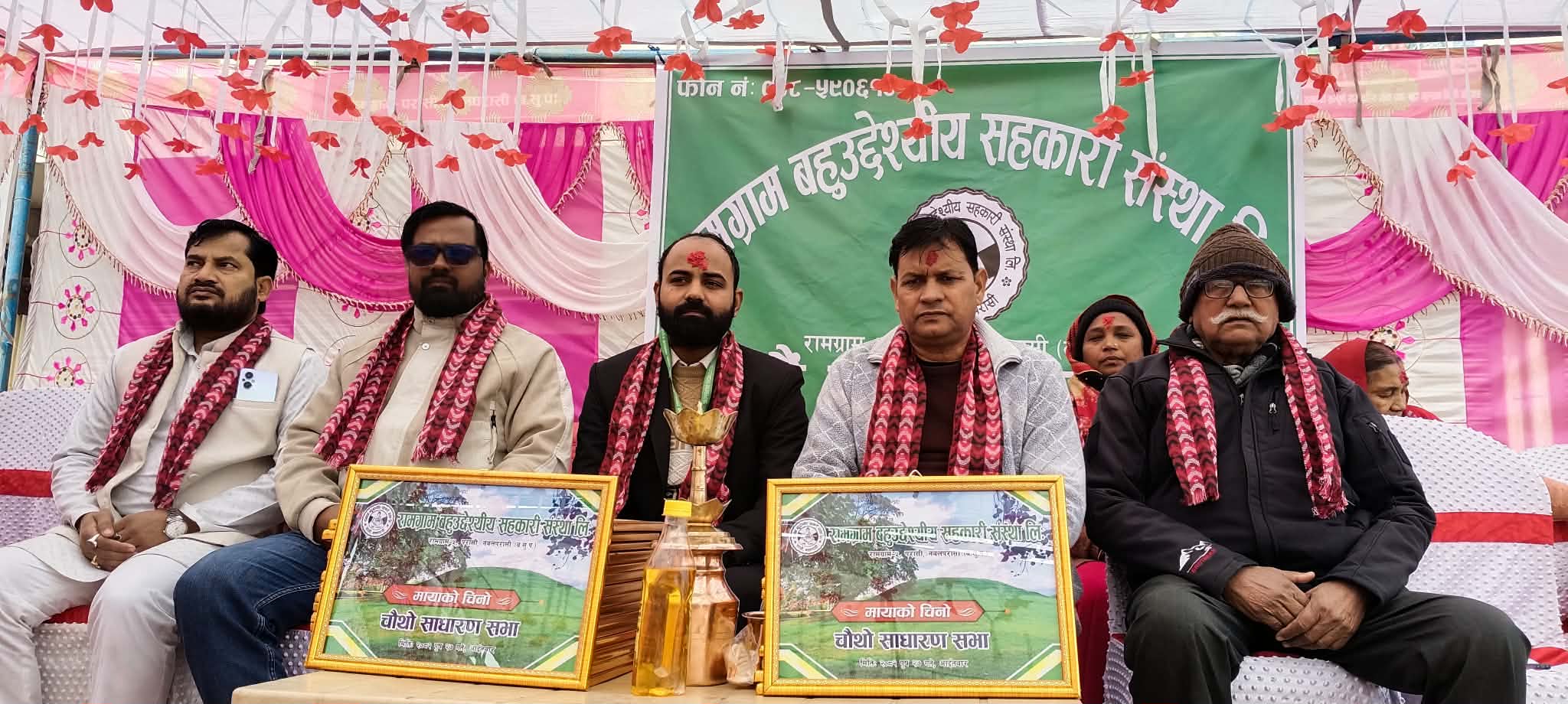 पश्चिम नवलपरासीको रामग्राम नगरपालिका वडा नम्बर ५ परासीमा रहेको रामग्राम बहुउद्देशीय सहकारी संस्था लिमिटेडको आईतवार चाैथाें वार्षिक साधारण सभा सम्पन्न भएको छ । संस्थाका अध्यक्ष शिवेन्द्र शाहको अध्यक्षता भएकाे कार्यक्रममा बाेल्दै रामग्राम नगरप्रमुख धनपत यादवले नगरभित्र रहेका सहकारी छानबिन गरि नियमनमा ल्याउने बताउनुभयो । उहाले नगरपालिकाले किसानहरुकाे लागि मल बिउको व्यवस्थापनमा लागि बताउनु भयो ।