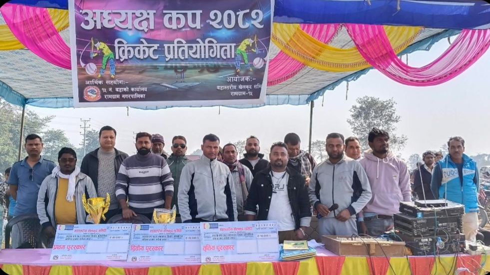 वडा स्तरीय खेलकुद समितिकाे आयाजनामा यहि पुस १९ रामग्राम-१५ वडा कार्यालयकाे आयाेजनामा पुस २६ गतेदेखि सुरु भएकाे प्रतियोगिताकाे आज फाइनल खेलमा रामग्राम-१५ क्रिकेट क्लबले १०१ रनले विजय भएकाे छ ।