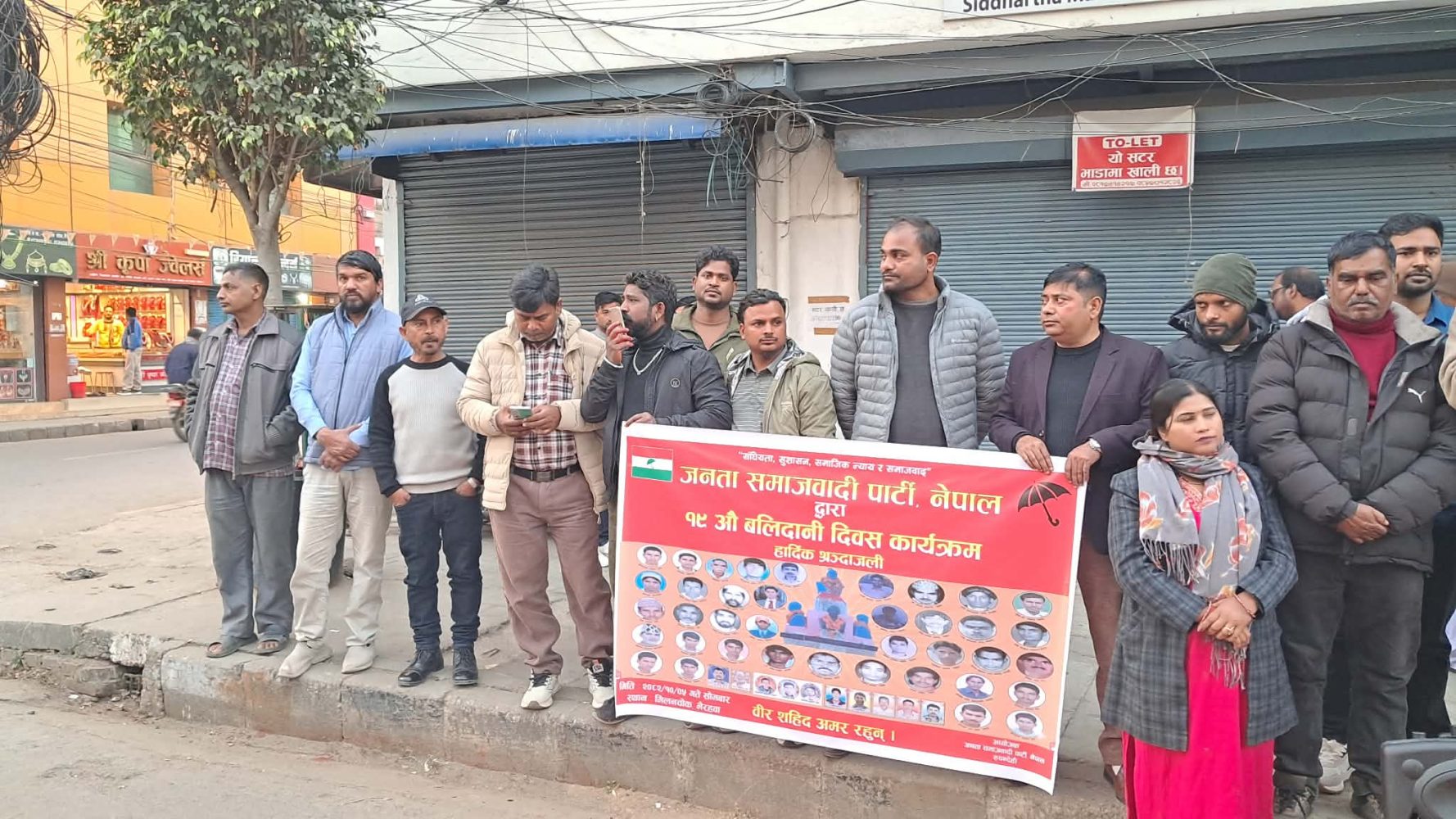 जसपा नेपाल रुपन्देहीका जिल्ला अध्यक्ष सियाराम यादवको अध्यक्षता तथा जसपाका जिल्ला सचिव बिष्णु अधिकारीको संचालनमा सम्पन्न कार्यक्रममा पार्टीका विभिन्न तहका नेता, कार्यकर्ता तथा समर्थकहरूको उल्लेखनीय सहभागिता रहेको थियो । बलिदानी दिवसको अवसरमा सहिदहरूप्रति दिप प्रज्वलनसहित श्रद्धाञ्जली अर्पण गर्दै कार्यक्रमको समापन गरिएको थियो ।