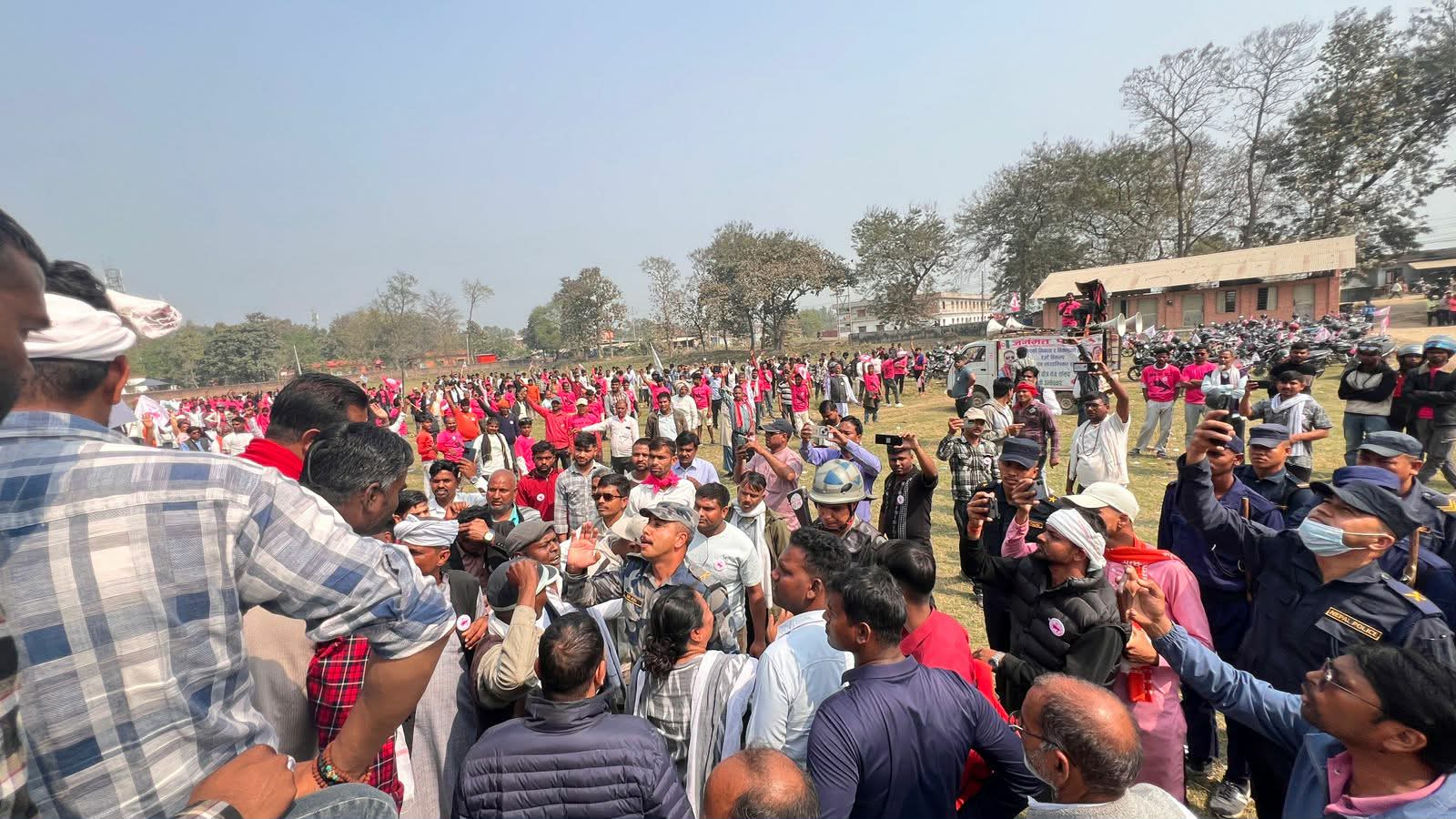 जनमत पार्टीले रुपन्देही क्षेत्र नम्बर ४ को मझगावामा विशाल आमसभा सम्पन्न गर्दै चुनावी शक्ति प्रदर्शन गरेको छ । हजारौंको संख्यामा उपस्थित युवा समर्थक, किसान तथा स्थानीय सर्वसाधारणले उम्मेदवार भोपेन्द्र प्रसाद यादवको पक्षमा ऐक्यबद्धता जनाएका थिए । सभालाई सम्बोधन गर्दै यादवले शान्तिपूर्ण रूपमा आफ्ना एजेन्डा राख्न खोज्दा प्रशासन प्रयोग गरेर अवरोध गर्न खोजिएको आरोप लगाउनु भएको छ । “तर आज मर्चवारका जनताले प्रमाणित गरिदिनुभयो कि परिवर्तनको लहर कसैले रोक्न सक्दैन,” उहाले भन्नु भयो ।