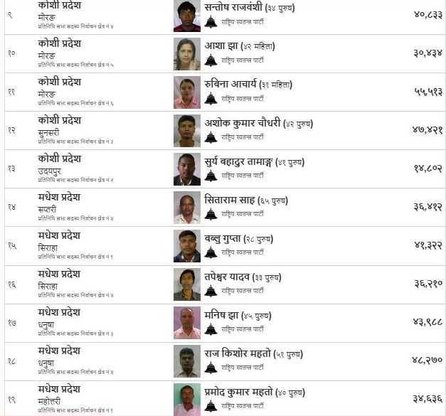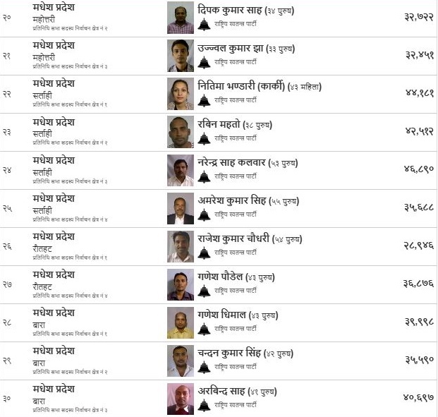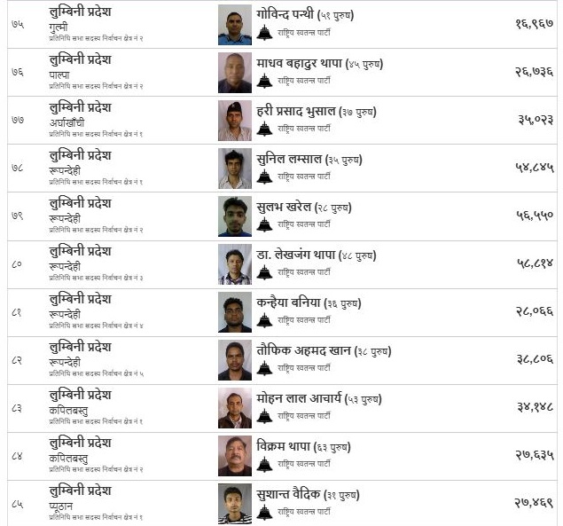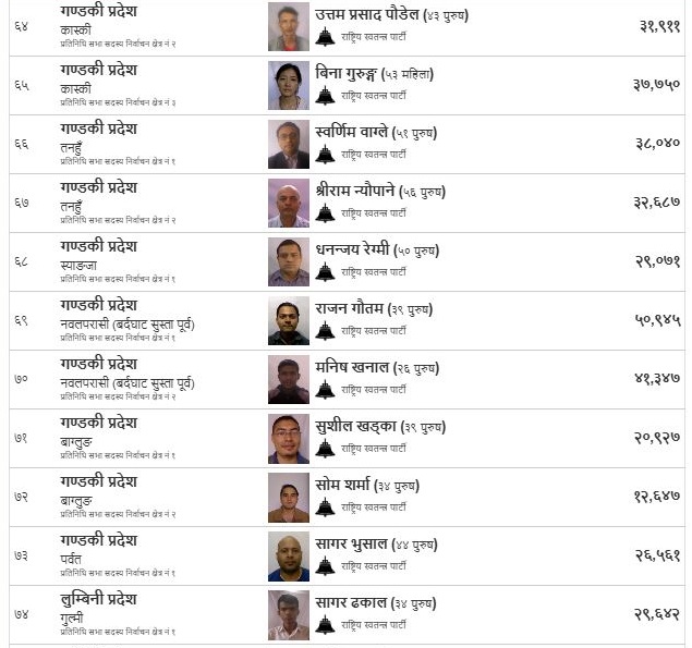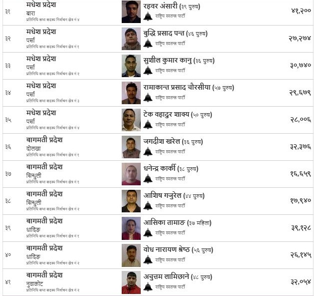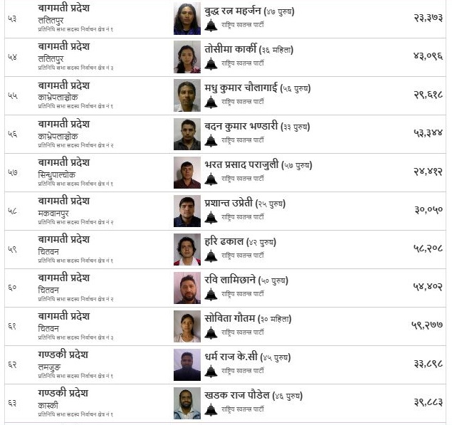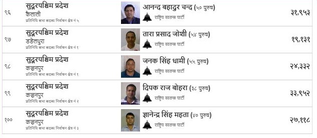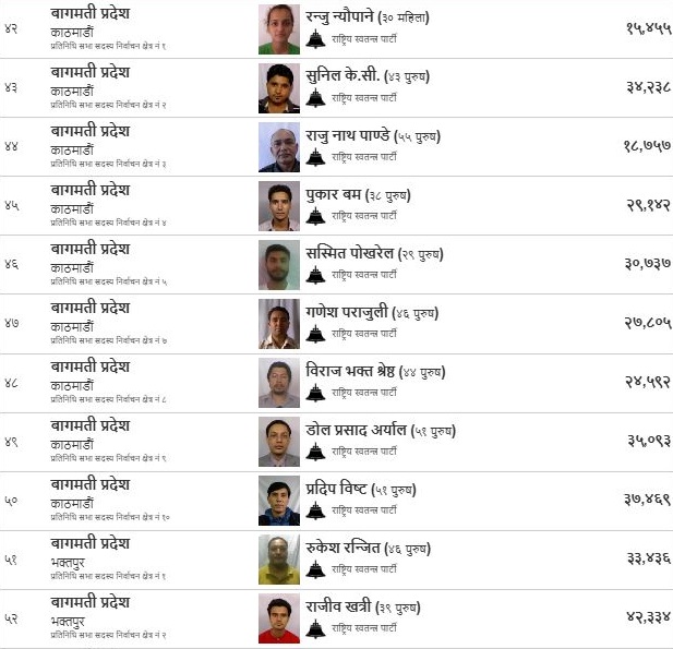 रास्वपाले अहिलेसम्म जितेका उम्मेदवार र क्षेत्र यस प्रकार छन् :