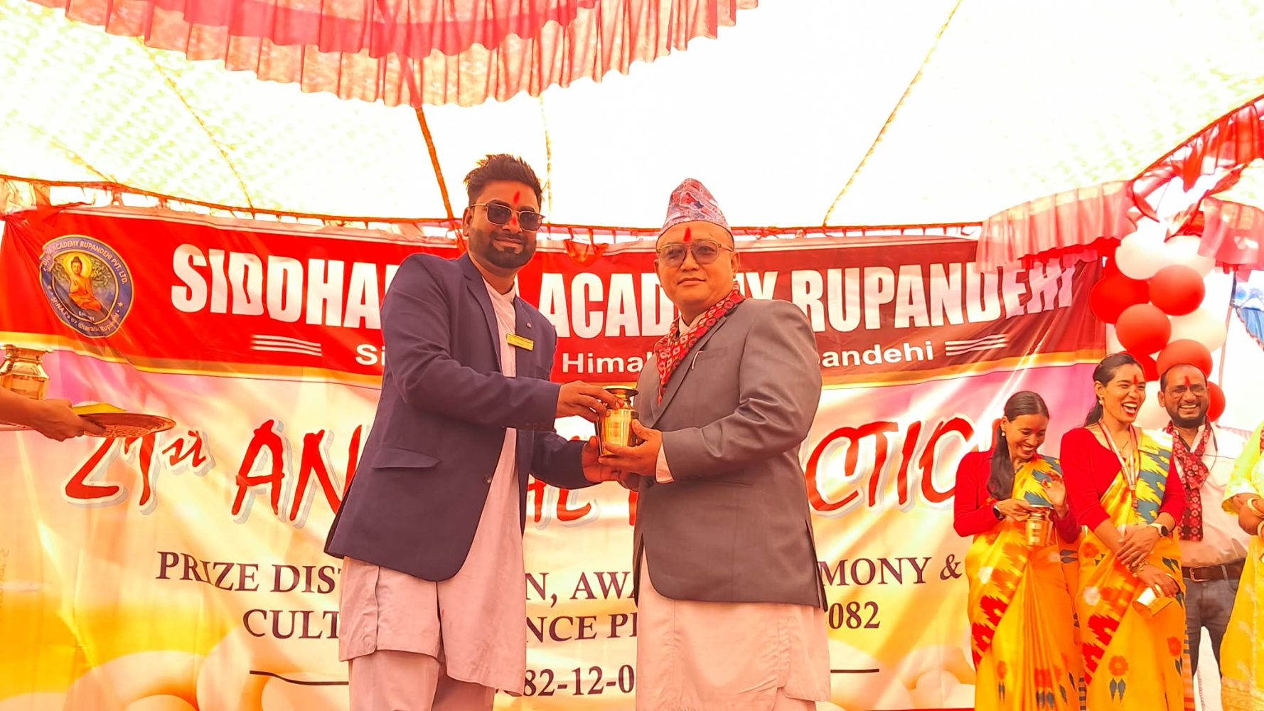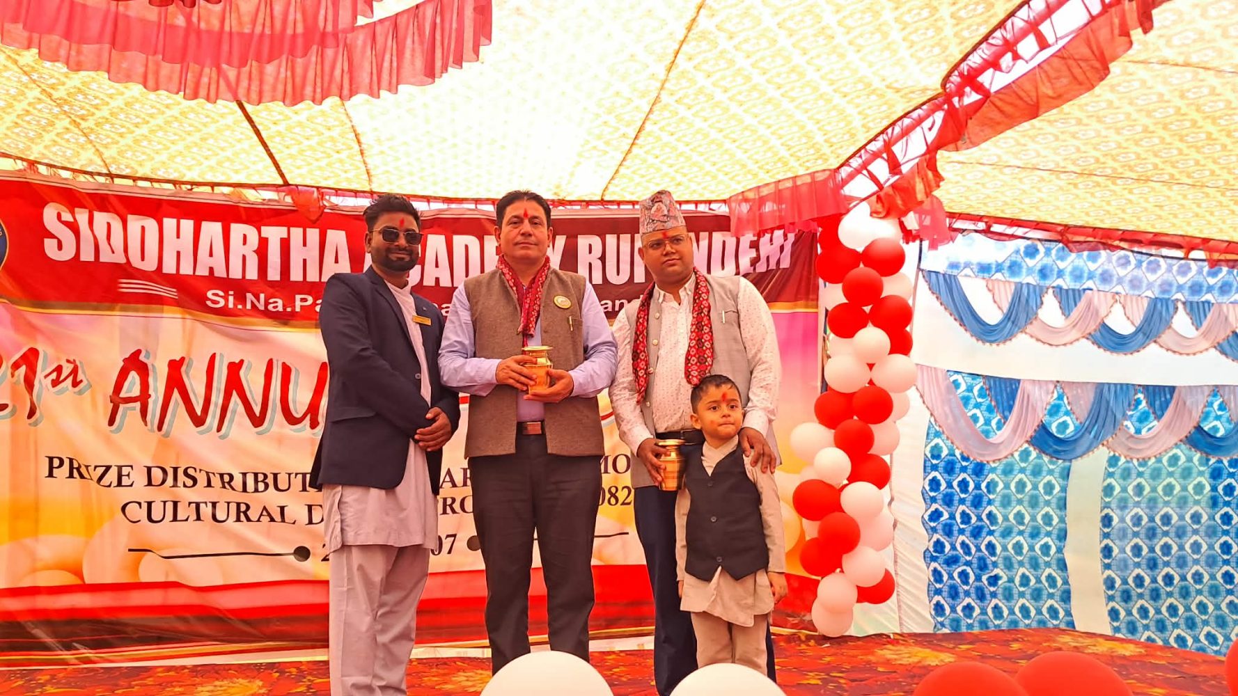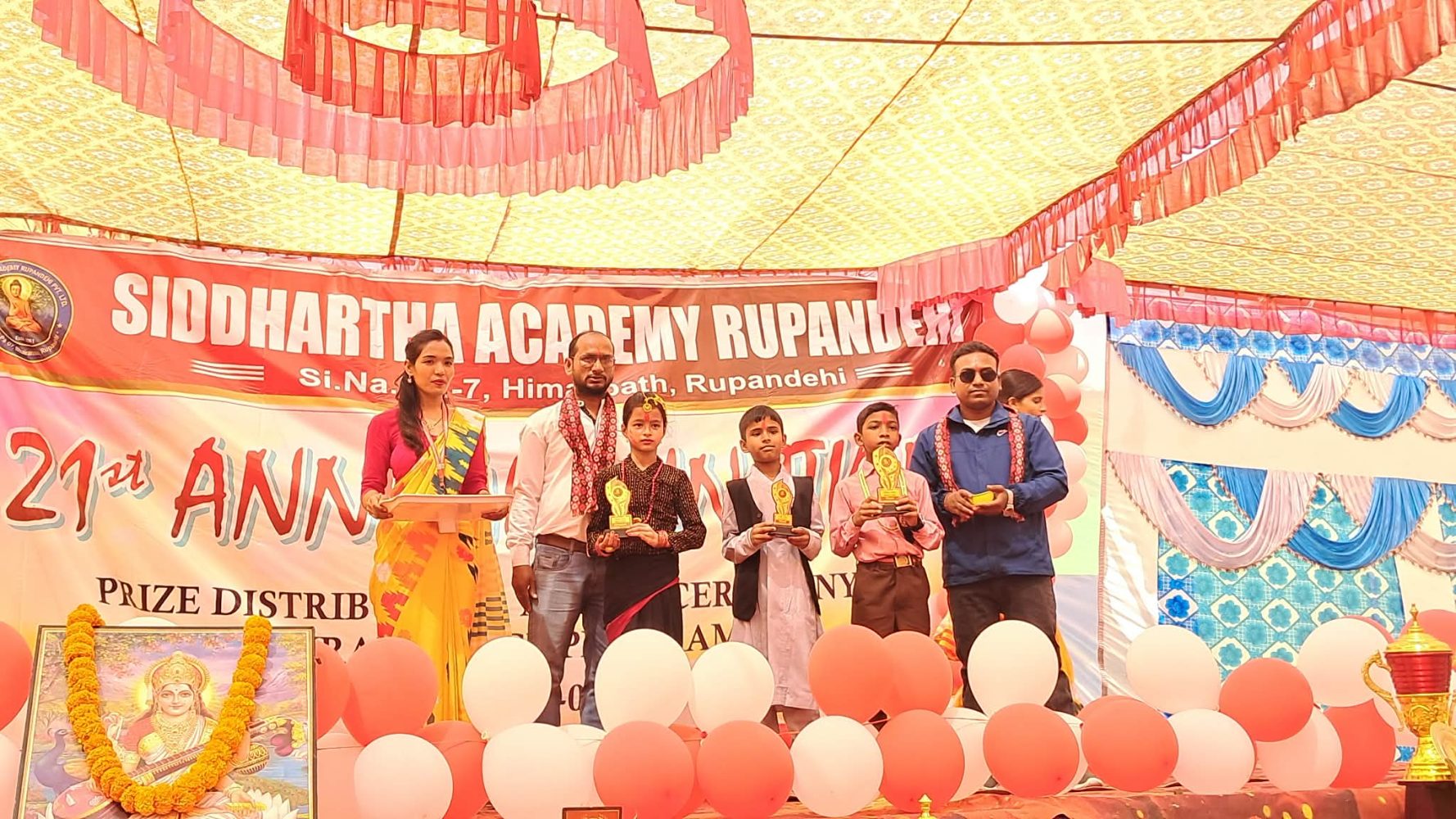 रुपन्देहीको सिद्धार्थनगर–७, भैरहवास्थित सिद्धार्थ एकेडेमीको २१ औँ वार्षिकोत्सव कार्यक्रम सम्पन्न भएको छ । विद्यालयका प्राचार्य अमित यादवको अध्यक्षता तथा सिद्धार्थनगर नगरपालिका वडा नम्बर –७ का वडाध्यक्ष दामोदर शर्मा घिमिरेको प्रमुख आतिथ्यतामा शुक्रबार एक कार्यक्रमका बिच कार्यक्रम सम्पन्न भएको हो ।