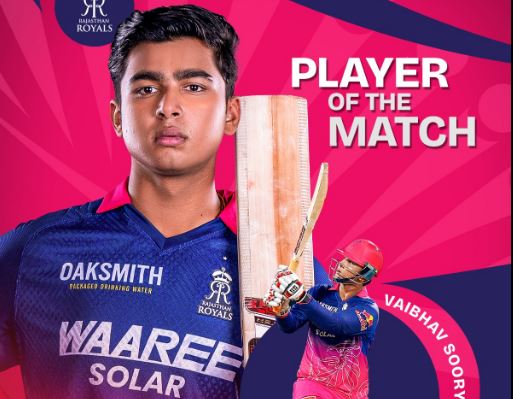 गुवाहाटीमा हिजो भएको खेलमा साविक विजेता आरसीबीले दिएको २०२ रनको लक्ष्य राजस्थानले १८ ओभरमा ४ विकेट गुमाउँदै पूरा गर्यो । राजस्थानको जितमा वैभव सूर्यवंशी र ध्रुव जुरेलले उत्कृष्ट प्रदर्शन गरे ।