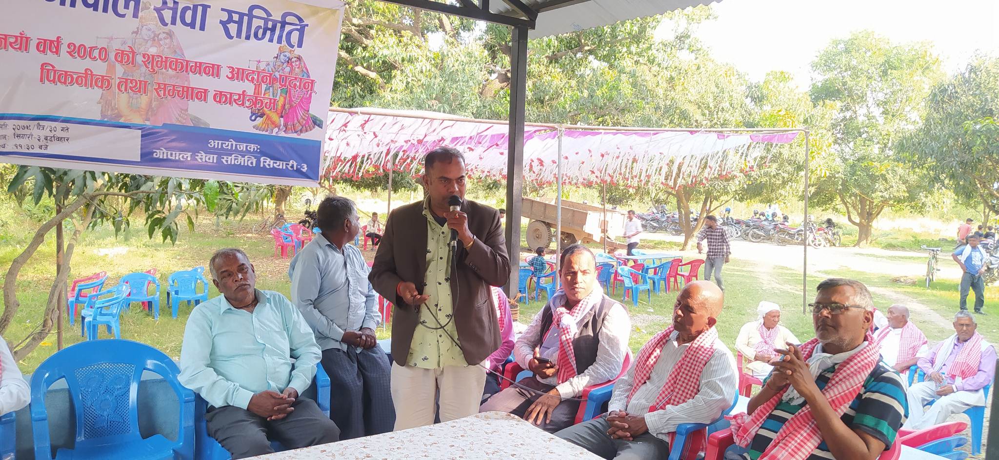 गोपाल सेवा समिती सियारी ३ रुपन्देहीले नया बर्ष २०८० को अवसरमा शुभकामना आदानप्रदान, पिकनिक तथा सम्मान कार्यक्रम बिहीबार सियारी ३ बौद्धबिहारमा सम्पन्न गरेको छ । गोपाल सेवा समिती क्षेत्र नम्बर ३ को पुर्व क्षेत्रिय अध्यक्ष राममिलन यादवको अध्यक्षता तथा गोपाल सेवा समितीका केन्द्रिय उपाध्यक्ष तथा रुपन्देही जिल्ला अध्यक्ष भरथरी यादवको प्रमुख आतिथ्यतामा कार्यक्रम सम्पन्न भएको हो । कार्यक्रममा बोल्दै प्रमुख अतिथी भरथरी यादवले गोपाल सेवा समितीले यादव समुदायको एकता र बिकासमा पुलको काम गर्दै आएको बताउनु भएको छ । उहाले यादव समुदायमा बिभिन्न राजनितीक बिचारधाराको ब्यक्ति भए पनि गोपाल सेवा समितीले सबैलाई एकै ठाउमा एकजुट गराएकोमा खुसी ब्यक्त गर्नु भएको छ । उहाले गोपाल सेवा समितीलाई अझै बिस्तार गर्दै सशक्त रुपमा अगाडी बढाउनेमा जोड दिनु भयो । उहाले यादव समुदाय प्रत्येक राजनितिक दलमा आवद्ध भएकोले अब नेतृत्व तहमा पनि यादवहरु आउनुपर्ने बताउनु भयो । उहाले यादवकुलबाट नेपालमा राजा देखि प्रथम राष्ट्रपति, उपराष्ट्रपति हुनु नै यादवहरुको लागी गौरवको इतिहास भएकोले अब प्रधानमन्त्री पनि यादव समुदायबाट आउन जरुरी रहेकोमा जोड दिनु भयो । उहाले जबसम्म यादवहरुको संगठनलाई मजबुत बनाउन सकिदैन तबसम्म यादव समुदाय जति अगाडी बढे पनि त्यसको औचित्य नहुने बताउनु भयो ।