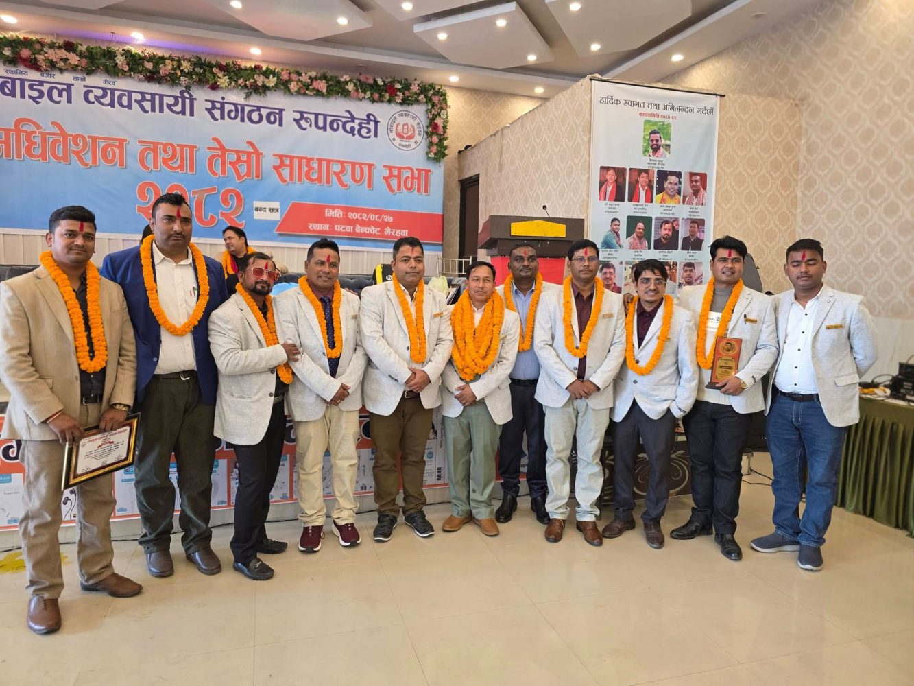 भैरहवा, मंसिर २७ मोबाइल व्यवसायी संगठन रुपन्देहीको तेस्रो साधारणसभा तथा दोस्रो अधिवेशन सम्पन्न भएको छ। अधिवेशनबाट हरिबहादुर पाण्डेको अध्यक्षतामा नयाँ कार्यसमिति निर्विरोध निर्वाचित भएको हो । नव–निर्वाचित कार्यसमितिको उपाध्यक्षमा राजकुमार गुप्ता, महासचिवमा श्यामप्रकाश गुप्ता, को..